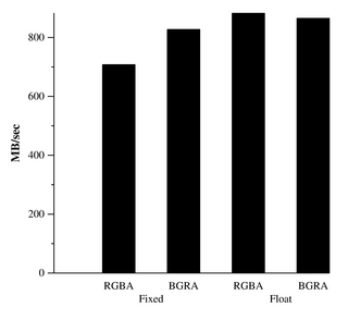 Note: Both graphs represent the same test. One shows MPix/sec and one reports GB/sec.