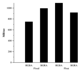 Note: Both graphs represent the same test. One shows MPix/sec and one reports GB/sec.