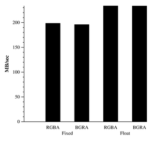 Note: Both graphs represent the same test. One shows MPix/sec and one reports GB/sec.