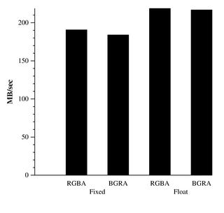 Note: Both graphs represent the same test. One shows MPix/sec and one reports GB/sec.