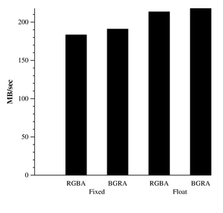 Note: Both graphs represent the same test. One shows MPix/sec and one reports GB/sec.