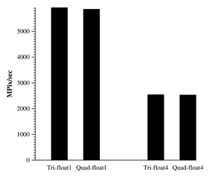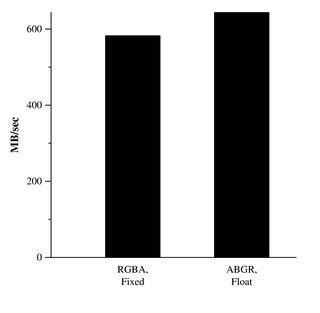 Note: Both graphs represent the same test. One shows MPix/sec and one reports GB/sec.
