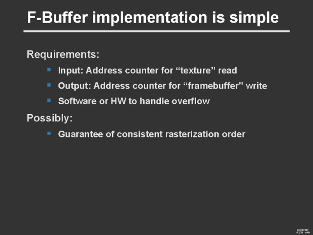 The F-Buffer: A Rasterization-Order FIFO Buffer for Multi-Pass Rendering