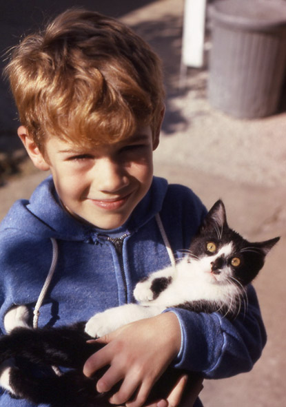 Here I'm around 8 years old, holding my first cat. She didn't like being picked up off the ground very much, and probably clawed me in the face immediately after this photo was snapped. And to think, I used to mock people who put pictures of their cats on the Internet...