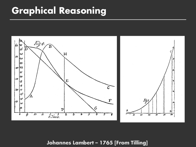 Lambert was the first to manipulate experimental data in this way. Computing the tangent of the curve to estimate the derivative is an example of a graphical calculation. However, what was most novel was that he then replotted his data to make a graph of evaporation rate vs. temperature.