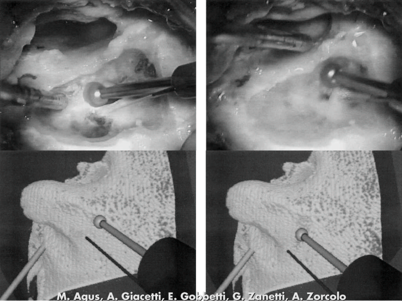 There is definitely cases where realistic images are best. A good example is training and simulation. My favorite example is surgical simulation. Here is an example of a real-time haptic and visual simulation of bone dissection built by Agus and colleagues. At the top is the actual view during a real surgery; at the bottom is the view through their simulator.