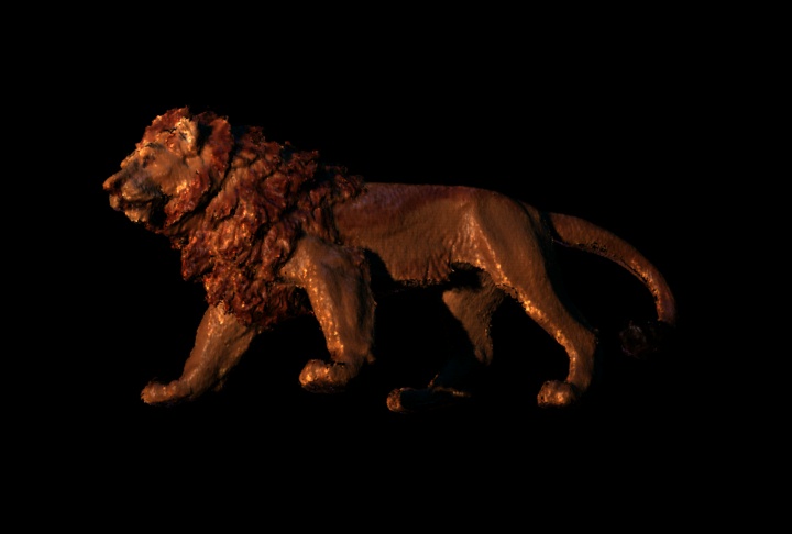 Our test object was a plastic toy lion 25cm long. By placing the toy lion in various orientations (including lying on its side) on our motion platform, we obtained 14 high-resolution range images (512 x 512 depth samples) aligned with submillimeter precision that covered (with much redundancy) the entire surface of the toy.