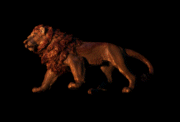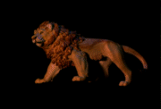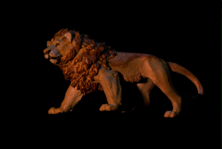 To generate images of the digitized lion, we rendered our zippered polygon mesh using Pixar's RenderMan software. Lights and the camera were placed according to measurements made from the real scene. Illuminant intensities and colors were selected by eye to match the real scene. We recreated the colorless reflectance of the plastic surface using RenderMan's standard plastic surface shader, with reflectance parameters selected by eye to match the real lion. These parameters were modulated on a per-vertex basis according to the scattered color computed for each vertex as described above. The scene was rendered with shadows and stochastic spatial supersampling, but without motion blur. The motion in the movie sequence was matched to that of the motion platform used in the real scene. Each frame of the movie took 25 minutes to render on a MIPS R4000 and required 128 MB of memory.