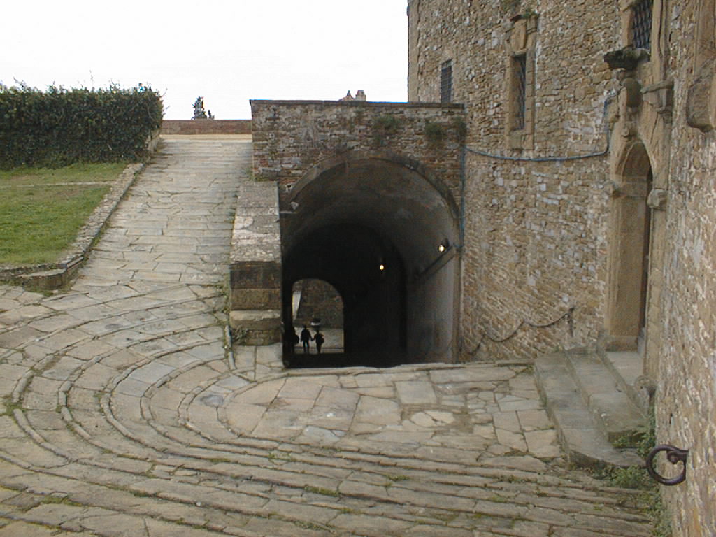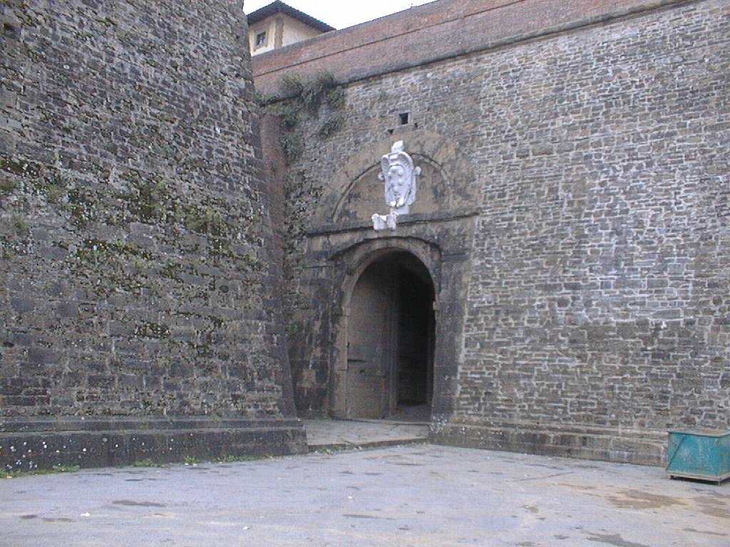 The crest of the Medicis sits over the archway.