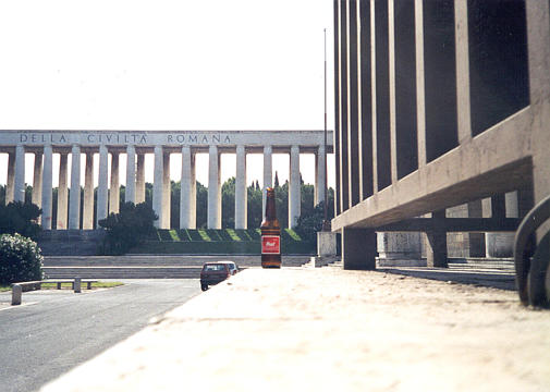 ++ When we did occasionally leave the museum in search of food, we found ourselves in downtown EUR, an example of suburbs gone horribly wrong. |