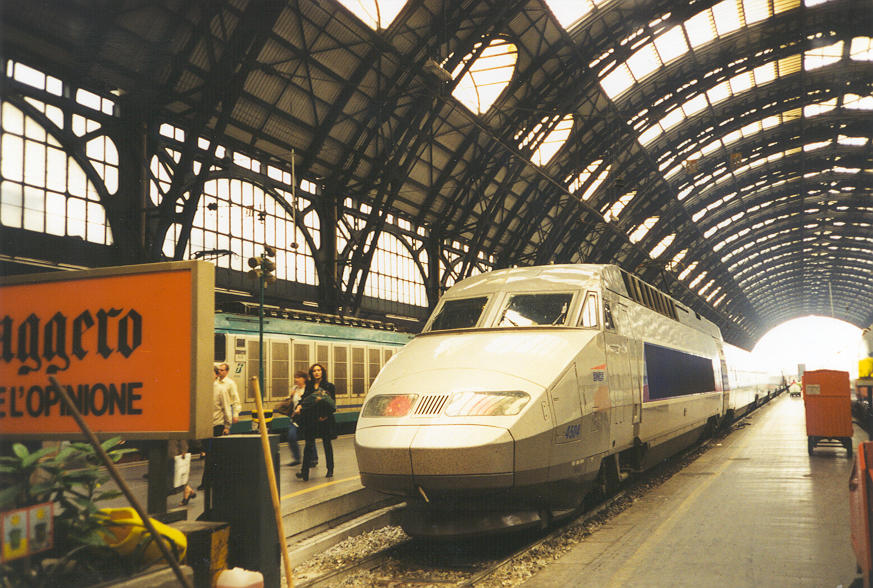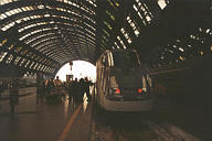 ++ Looking back at the Eurostar train we rode in the Milan station. The glass and steel structure was open on one end... |