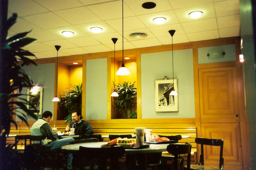 ++ Even the restroom in McDonalds had a flair for style. Deep blue lights illuminated the stalls, giving it a Star-Trek glow. |