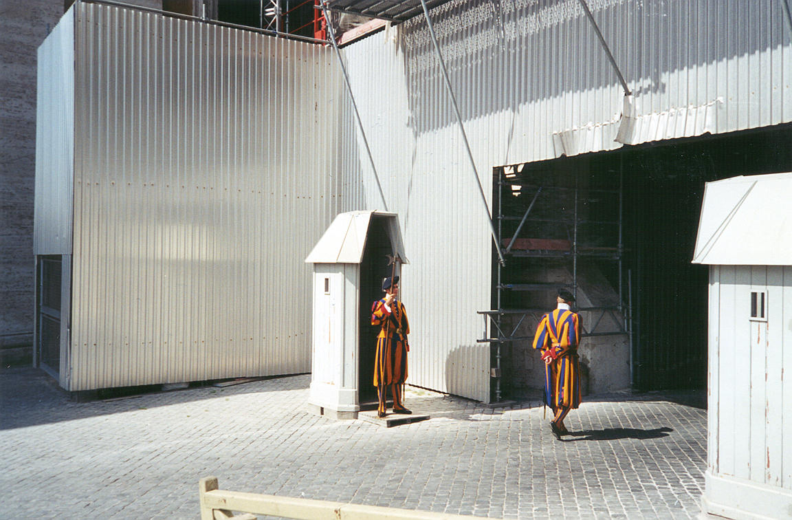++ Back outside, the Swiss Guard seem to enjoy their role, even if they wear those funny outfits. At least they get to carry a genuine halberd (or is it a pike?). :-) |