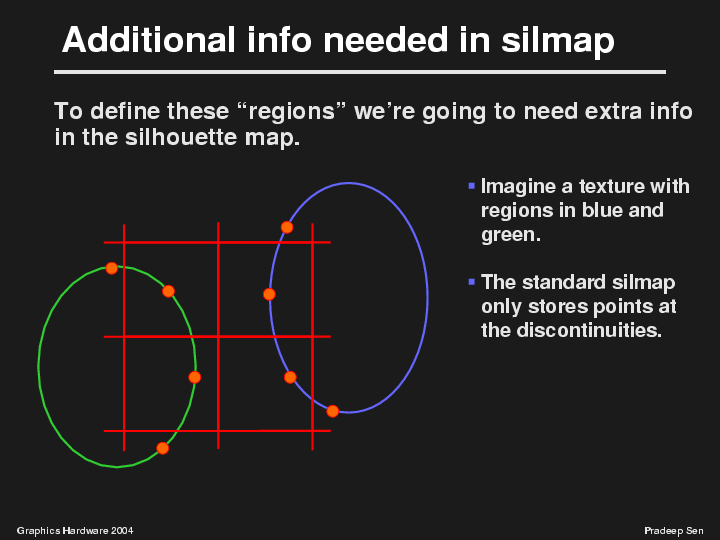 The regions shown would result in the following silhouette points in the silhouette map...