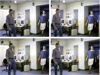 Spatiotemporal Sampling and Interpolation for Dense Camera Arrays. This is a work in progress. We have already shown that we can simulate a high-speed camera by tightly packing many cameras with staggered trigger times. If we spread the cameras out, we can capture views from multiple positions and multiple times for spatiotemporal view interpolation--synthesizing new views from positions and times not in our captured set of images. Our improved temporal resolution lets us use simpler, image-based methods to generate new views. We can also eliminate the alignment errors in the high-speed video work above. Here's an example video. |