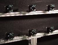 High Performance Imaging Using Large Camera Arrays. Bennett Wilburn, Neel Joshi, Vaibhav Vaish, Eino-Ville Talvala, Emilio Antunez, Adam Barth, Andrew Adams, Mark Horowitz and Marc Levoy. (Presented at ACM Siggraph 2005). This paper describes the final 100 camera system. We also present applications enabled by the array's flexible mounting system, precise timing control, and processing power at each camera. These include high-resolution, high-dynamic-range video capture; spatiotemporal view interpolation (think Matrix Bullet Time effects, but with virtual camera trajectories chosen after filming); live, real-time synthetic aperture videography; non-linear synthetic aperture photography; and hybrid-aperture photography (read the paper for details!). Here's a video (70MB Quicktime) showing the system and most of these applications. |