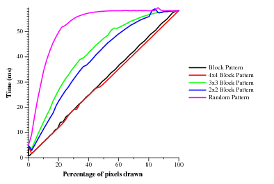 However, even once I correct the timing, the rasterization numbers are pretty good. They're pretty much a direct function of the number of triangles in the scene (no surprise since I shove all the primitives in a vertex array and dump them on the board). I've done some timing with and without GL_LIGHTING enabled. Without it, the cbox manages over 1350 fps down to 95 fps for the kitchen. With lighting, cbox only drops to 1310 fps, but the kitchen drops to 64 fps. Those are all at 1024x1024. Messing around, performance is clearly dependent on resolution, but not in any simple way. 512x512 looks to be a bit of a sweet spot for this particularly board.