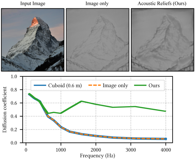 We present a framework to optimize and generate Acoustic Reliefs: Acoustic diffusers that not only perform well acoustically in scattering sound uniformly in all directions, but are also visually interesting and can approximate user-provided images. To this end, we develop a differentiable acoustics simulator based on the boundary element method, and integrate it with a differentiable renderer coupled with a vision model to jointly optimize for acoustics, appearance, and fabrication constraints at the same time. We generate various examples and fabricate two room-scale reliefs. The result is a validated simulation and optimization scheme for generating acoustic reliefs whose appearances can be guided by a provided image.