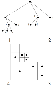 correspond to nodes in the tree. The numbers correspond to a fixed sample
